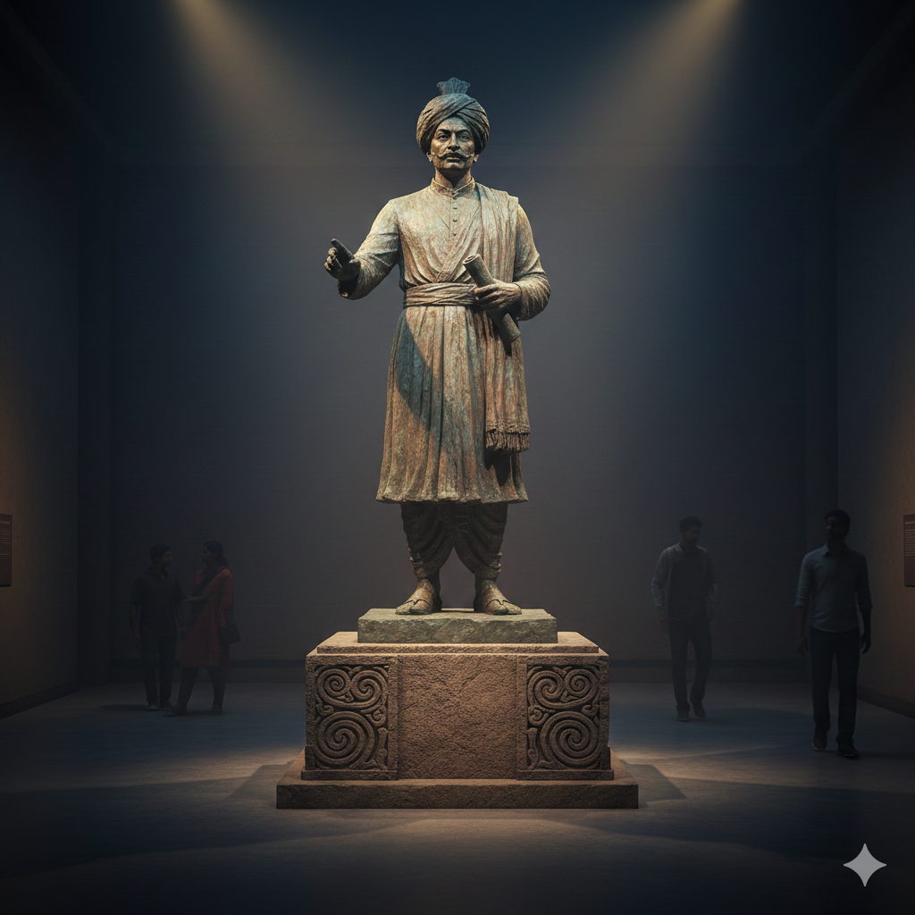 A curated archive of digitally restored photographs, each annotated with historical insights, timelines, and rare contextual details from Savarkar’s life journey.