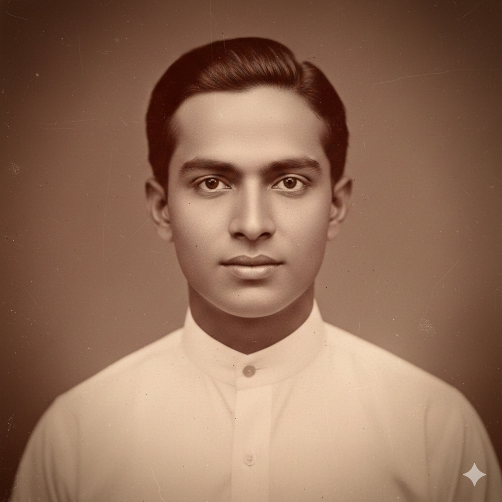 One of the earliest surviving photographs, restored to recover facial clarity and period details from his youth in Bhagur.